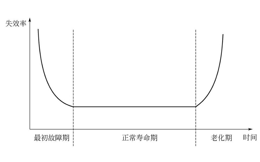 (1)早期失效設(shè)備在最初故障期發(fā)生的失效為早期失效,失效率由大減小。這是因為生產(chǎn)出的設(shè)備中有一些存在生產(chǎn)缺陷,隨著它們不斷的暴露出來,失效率就逐漸下降。