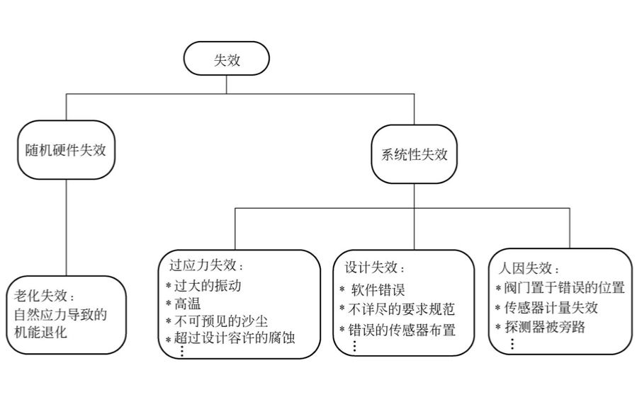 ②設(shè)計失效:廣義地把系統(tǒng)投入運行之前引入的失效稱為設(shè)計失效,包括軟件錯誤、系統(tǒng)說明規(guī)范的缺陷,制造缺陷或者安裝不規(guī)范帶來的失效。例如由于操作力不夠?qū)е碌拈y門失效,傳感器不能區(qū)分正確或錯誤要求,火災(zāi)或氣體探測器安裝位置錯誤。